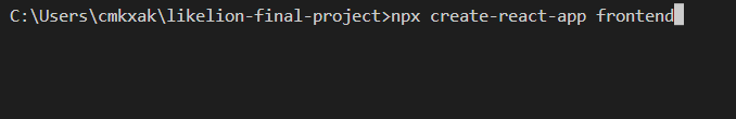 위의 명령어는, frontend라는 파일에 리액트 프로젝트를 하나 생성한다는 의미입니다.