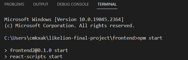 이제 생성된 리액트 프로젝트를 아래 명령어를 통해 실행해보도록 하겠습니다.