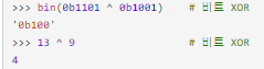 파이썬에서 XOR은 ^를 활용해 나타낼 수 있습니다.